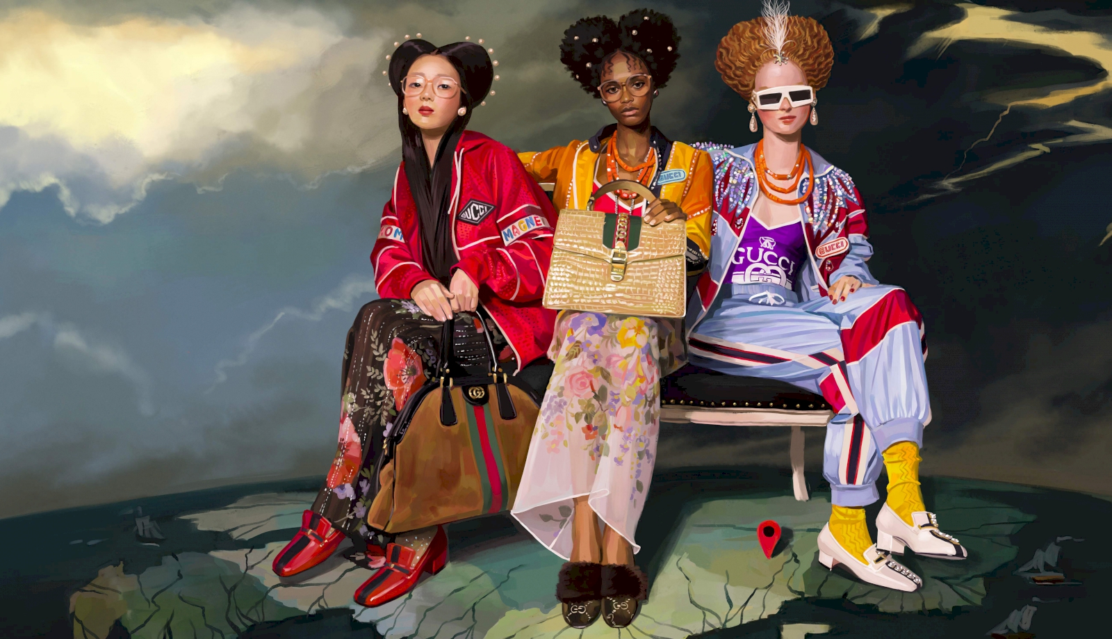 เหล่าหญิงสาวผู้ถือคันเบ็ดตกปลาตกเครื่องบินอยู่บนก้อนเมฆกลางเวหา, นางเงือกที่นอนถ่ายภาพเซลฟี เหล่านี้เป็นภาพของโลกเหนือจริงอันมหัศจรรย์ตระการตาที่ปรากฏในแคมเปญคอลเล็คชั่นฤดูใบไม้ผลิ/ฤดูร้อน ปี 2018 ของ Gucci ที่สร้างสรรค์โดย อิกนาซี มอนเรียล (Ignasi Monreal) ศิลปินนักวาดภาพประกอบชื่อดังชาวสเปน ผู้เป็นที่รู้จักจากภาพวาดสิ่งมีชีวิตมหัศจรรย์ในจินตนาการอันบรรเจิด