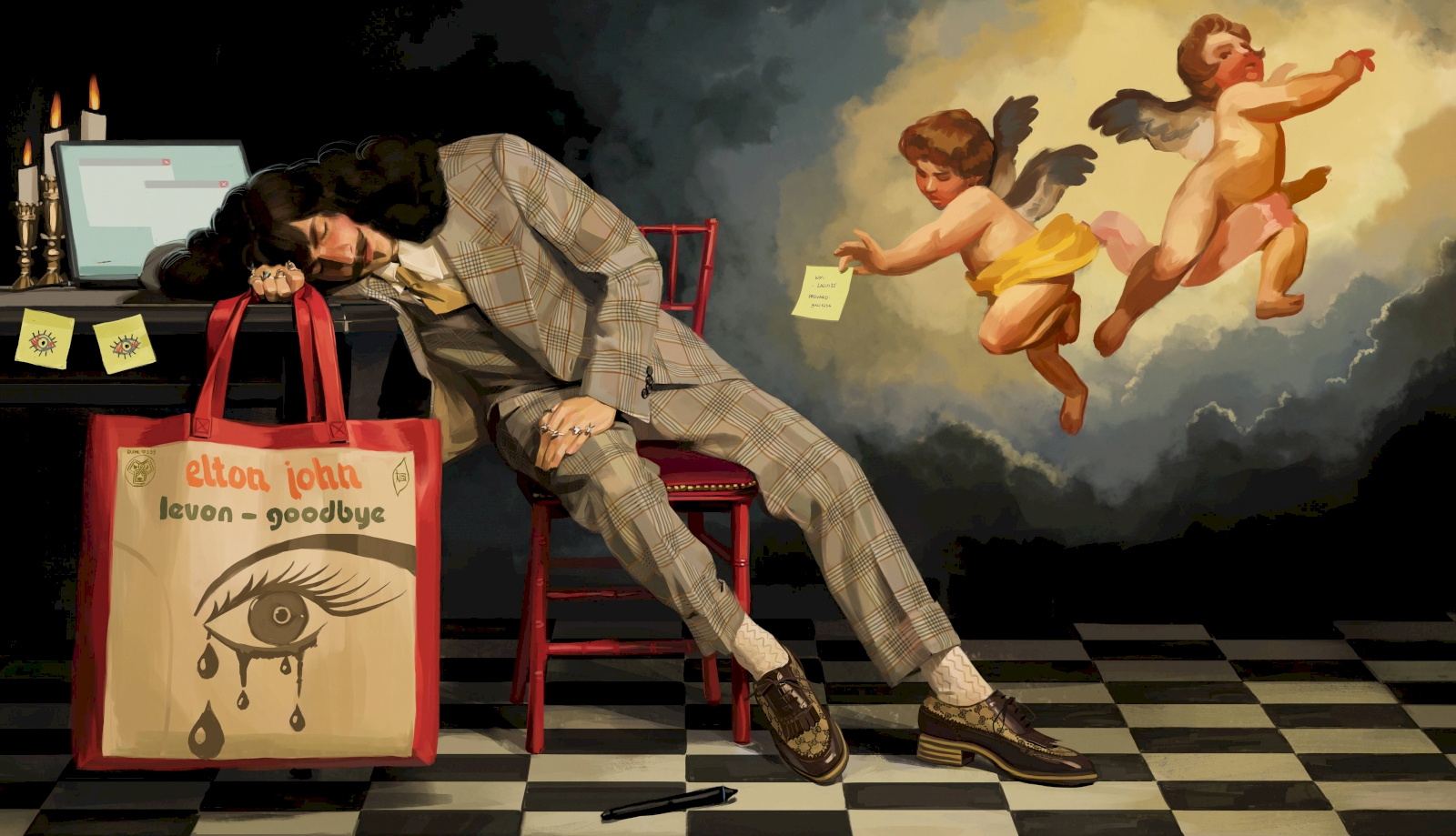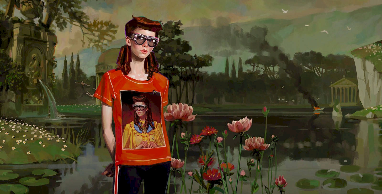 ไม่ว่าจะเป็นการหยิบเอาแรงบันดาลใจจากภาพวาด Ophelia (1852) หรือภาพ "หญิงสาวผู้หลับใหลในสายน้ำ" ของ จอห์น เอเวอร์เรตต์ มิลเลส์ (John Everett Millais) มาเพื่อขับเน้นรายละเอียดของชุดเดรสสีทองของกุชชี่ (ภาพเปิด)