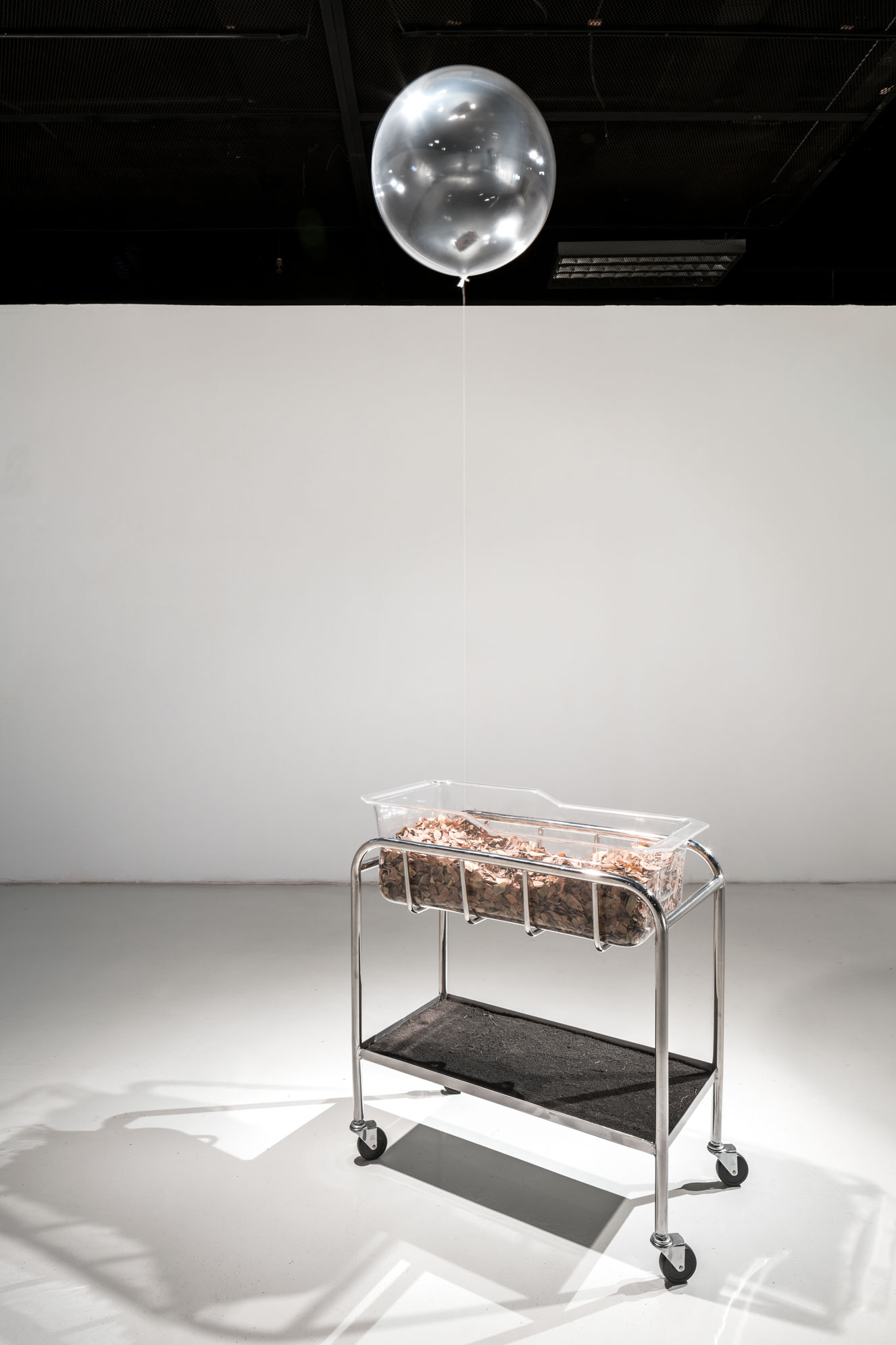 INVISIBLE BEGINNING, เปลเด็กแรกเกิด, เมล็ดพืชเงิน, ลูกโป่งใส, ผลงานจากนิทรรศการ CAPTURING THE INTANGIBLE, 2016