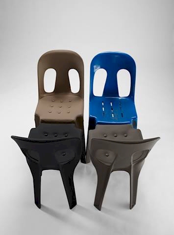 เก้าอี้ตัวนี้เป็นเก้าอี้ที่หลายคนรู้จักกันดี และเรียกขานมันว่า “เก้าอี้พลาสติก” หรือเรียกในชื่อเป็นทางการว่า เก้าอี้โมโนบล็อก (Monobloc chair) ที่เรียกกันว่า “โมโนบล็อก” ก็เพราะมันถูกผลิตขึ้นด้วยกระบวนการเทอร์โมพลาสติก (Thermoplastic) หรือการให้ความร้อนกับพลาสติกจนหลอมเหลว และนําไปฉีดขึ้นรูปเป็นเก้าอี้โดยแม่พิมพ์ตัวเดียว ต่างจากในยุคก่อนหน้า ที่เก้าอี้พลาสติกถูกผลิตด้วยการฉีดพลาสติกหลายชิ้นมาประกอบกันเป็นเก้าอี้ตัวหนึ่ง ดังนั้นโมโนบล็อก จึงไม่ใช่ประเภทของดีไซน์ หากแต่เป็นกระบวนการในการผลิตนั่นเอง