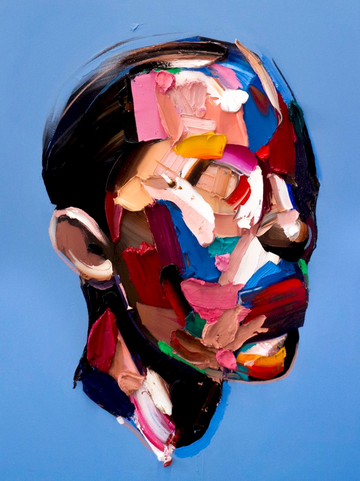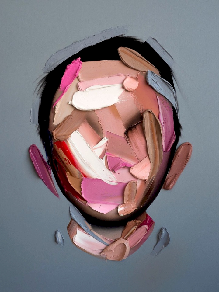 ภาพวาดพอร์ตเทรตกึ่งนามธรรมหลากสีสันที่ใช้ฝีแปรงหนาหนักแสดงอารมณ์ของใบหน้าที่ถูกซ่อนเอาไว้ออกมา