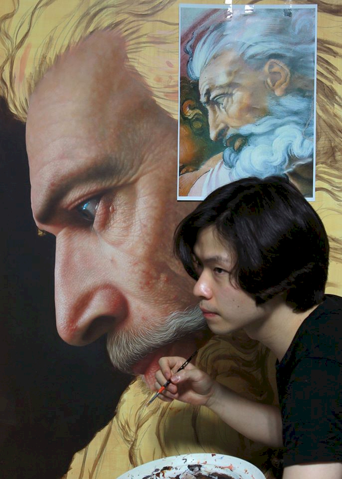 ศิลปินเกาหลี จูงวาน จยูง (Joongwon Jeong) นำเอาผลงานชิ้นเอกและภาพของผู้คนมีชื่อเสียงในอดีตมาชุบชีวิตให้กลายเป็นภาพวาดไฮเปอร์เรียลลิสติก หรือภาพวาดเหมือนจริงสุดขั้ว ไม่ว่าจะเป็นภาพวาดพระเจ้าและอดัม ในผลงาน The Creation of Adam ผลงานจิตรกรรมปูนเปียกบนเพดานโบสถ์น้อยซิสทีน ในนครรัฐวาติกัน ที่ถูกจินตนาการขึ้นมาใหม่ด้วยฝีมือวาดภาพอันฉกาจฉกรรจ์ของจยูง จนเหมือนจริงยิ่งกว่าภาพถ่าย ไม่ว่าจะเป็นริ้วรอยบนใบหน้าหรือเส้นผมที่ดูเหมือนราวแทบจะสามารถเอื้อมมือไปสัมผัสใบหน้าเหล่านั้นได้จริงๆ เลยก็ว่าได้