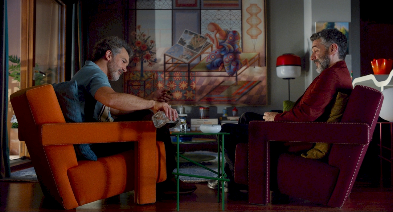 ภาพวาดศิลปินไร้ใบหน้ากำลังเปิดอ่านหนังสือศิลปะในห้องหับที่ตกแต่งอย่างเก๋ไก๋เปี่ยมสไตล์อย่าง Artist viewing an art book ที่ปรากฏในหนัง Pain and Glory นั้นสะท้อนรสนิยมในการใช้ชีวิตและการหวนกลับไปค้นหาตัวตนในอดีตของตนเองของตัวละครเอกในหนัง Pain and Glory ได้อย่างแยบคาย