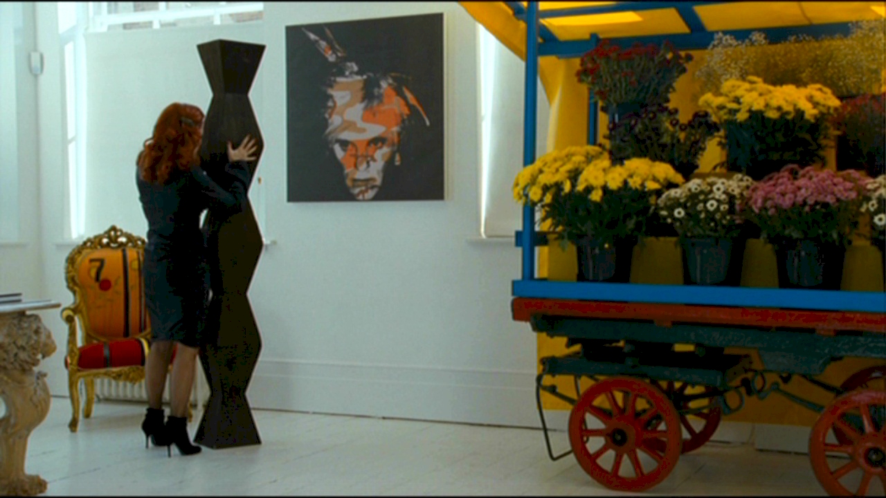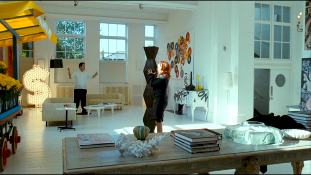 ภาพจากหนัง Boogie Woogie (2009) ในฉากที่ปรากฏผลงานของ คอนสแตนติน บรังคูซี (ประติมากรรมรูปเสา), แอนดี้ วอร์ฮอล, ทิม โนเบิล และ ซู เว็บสเตอร์ (ป้ายไฟรูป $) และ ไมเคิล แลนดี (รถเข็นดอกไม้จากปากคลอง #ไม่ใช่ละ!)