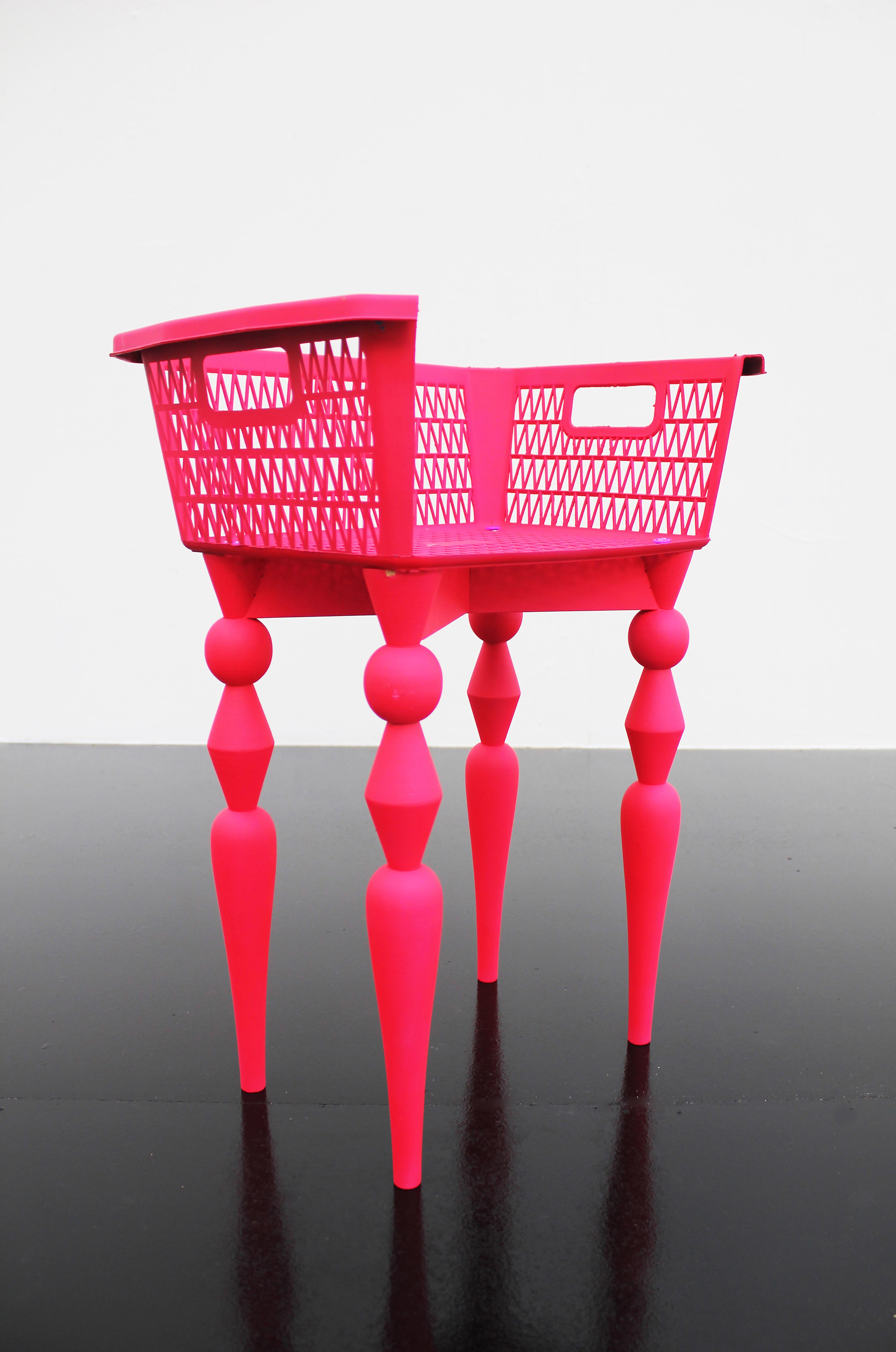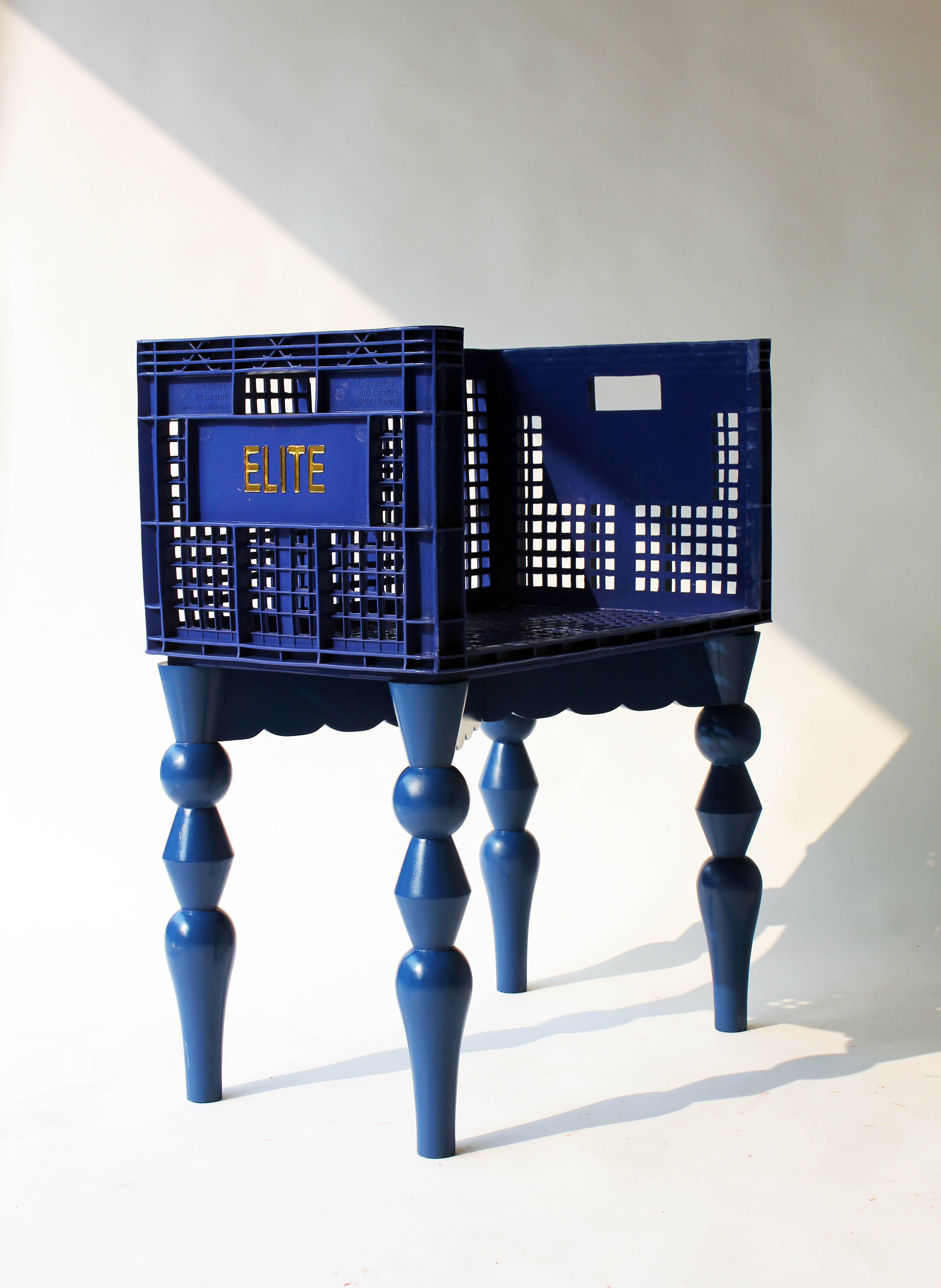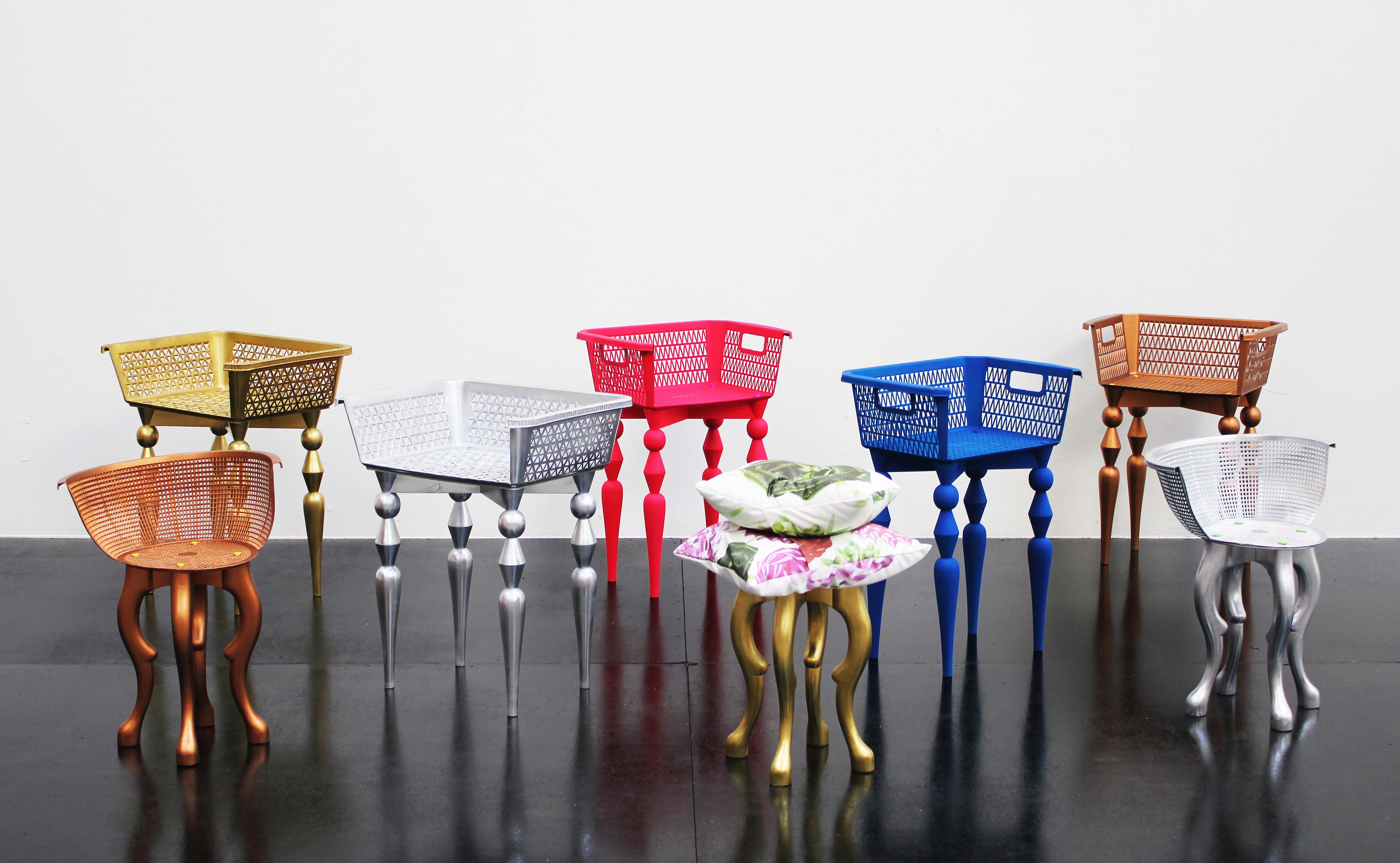 คือบ้านผมอยู่นนทบุรี พอผมได้ตั๋วกลับจากสวีเดนมาผมก็จะนอนอยู่ที่บ้าน ปรากฏว่าที่บ้านก็จะมีร้านขายของชำเยอะ พอดีกับช่วงนั้นมีข่าวสารเกี่ยวกับการเมืองพอดี เราก็เริ่มสนใจเรื่องการเมือง แต่เป็นในมุมมองที่มันเกี่ยวข้องกับรสนิยม ว่าขนาดรสนิยมมันก็ยังมีการเมืองของมันว่านี่รสนิยมไม่ดี นี่รสนิยมดี ผมก็เลยหยิบตะกร้าที่ร้านขายของชำนี่แหละมาทำ ร้านหน้าบ้านเลย ร้านโชว์ห่วยที่มีขายพวกตะกร้า ขันพลาสติก พวงใส่เครื่องปรุง ก็เดินเข้าไปหยิบซื้อมา ประมาณว่า ของพวกนี้เป็นของที่คนมองว่ามันเป็นของโหล รสนิยมไม่ดี แต่เราจะทำให้มันกลายเป็นของที่มีรสนิยมดีให้ดู ก็เอามันมาต่อกับขาหลุยส์ ขานีโอบาโร้กอะไรก็ว่าไป เอามาลดทอนรูปทรงให้มันอยู่ด้วยกันได้