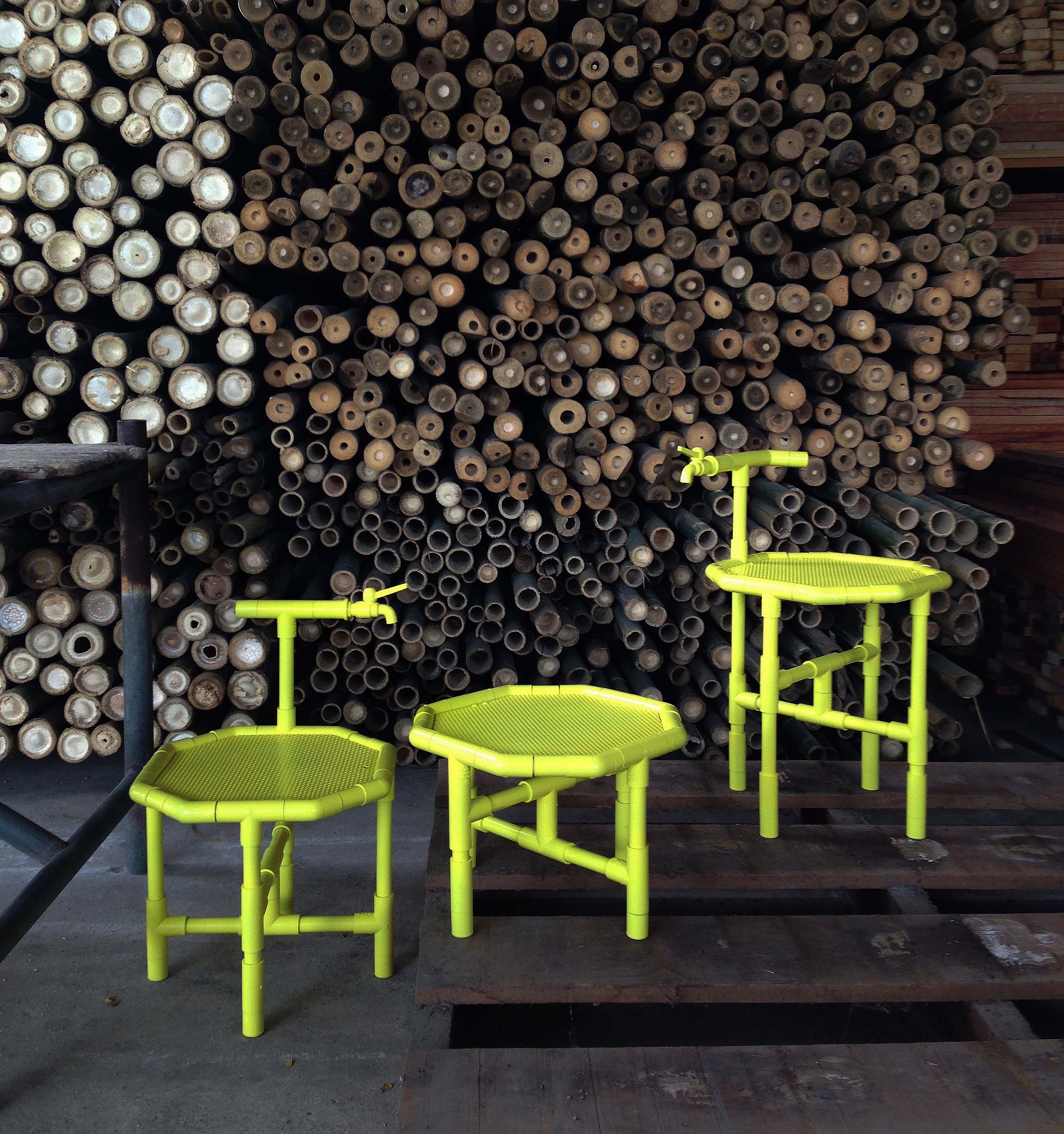 พูดง่ายๆ คือผมไม่ได้เรียนเฟอร์นิเจอร์มาโดยตรงน่ะครับ ถึงเรียนก็ความรู้น้อยมาก ก็เลยแบบ เราคิดว่าเราทำอย่างงี้ได้ ก็หั่นมันอย่างงี้แหละ มันก็นั่งได้นี่ แล้วจำได้คือตัวต้นแบบตัวแรก วิธีการปิดหัวน็อตของผมน่ารักมาก คือเอากระดุมทากาวแล้วแปะหัวน็อต (หัวเราะ) น่ารัก! คิวต์ๆ โคตรผิดเลย! (หัวเราะ)