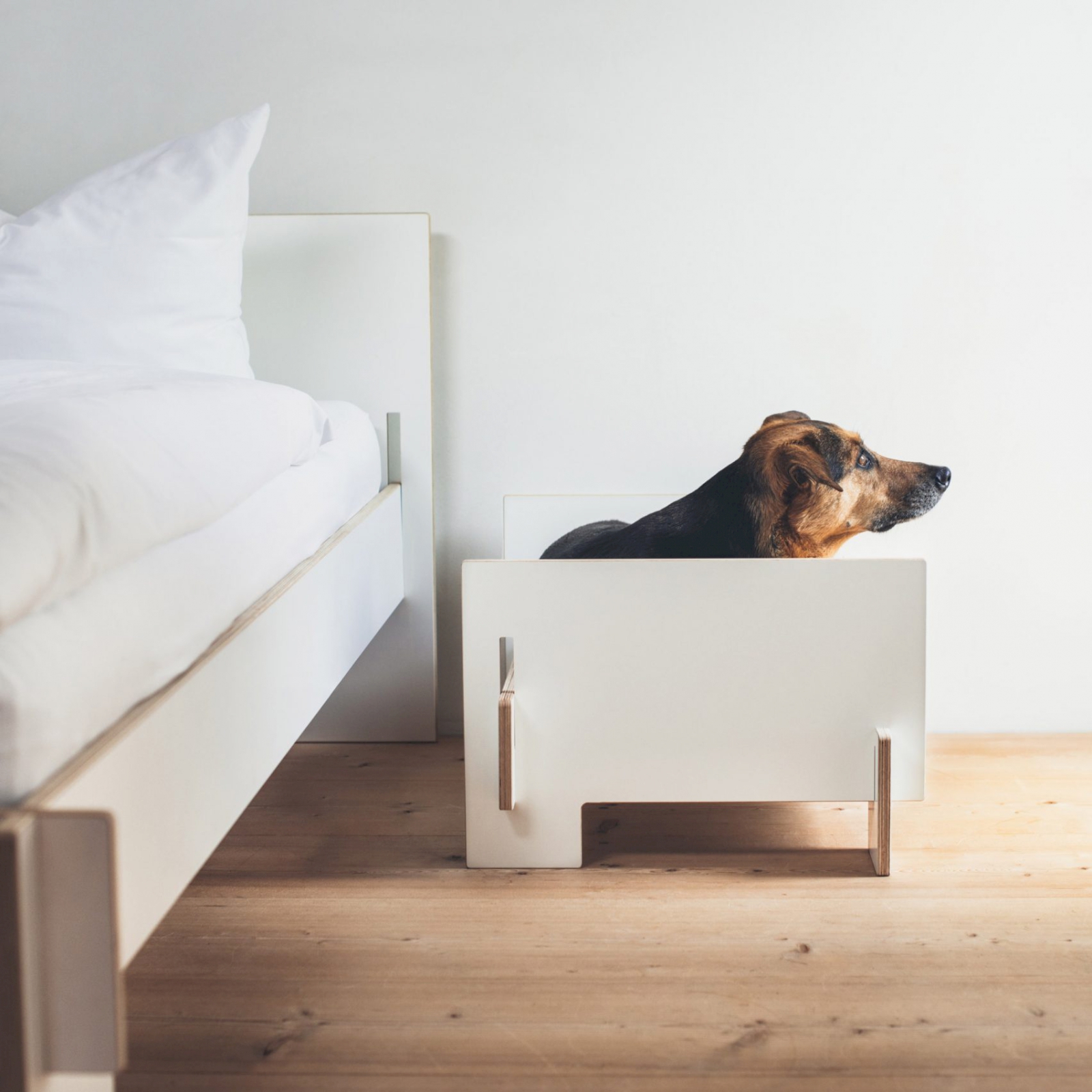 นีลส์ โฮลเกอร์ มัวร์มัน (Nils Holger Moormann) นักทำเฟอร์นิเจอร์ชาวเยอรมัน สร้างสรรค์เตียงนอนสำหรับน้องหมาแบบถอดประกอบได้ เพื่อให้วางเคียงข้างอย่างเข้าชุดกับเตียงนอนของเจ้าของที่เขาออกแบบ อ่านเกี่ยวกับ เตียงนอนน้องหมา Kläffer ได้ที่นี่ https://goo.gl/tGiu8B