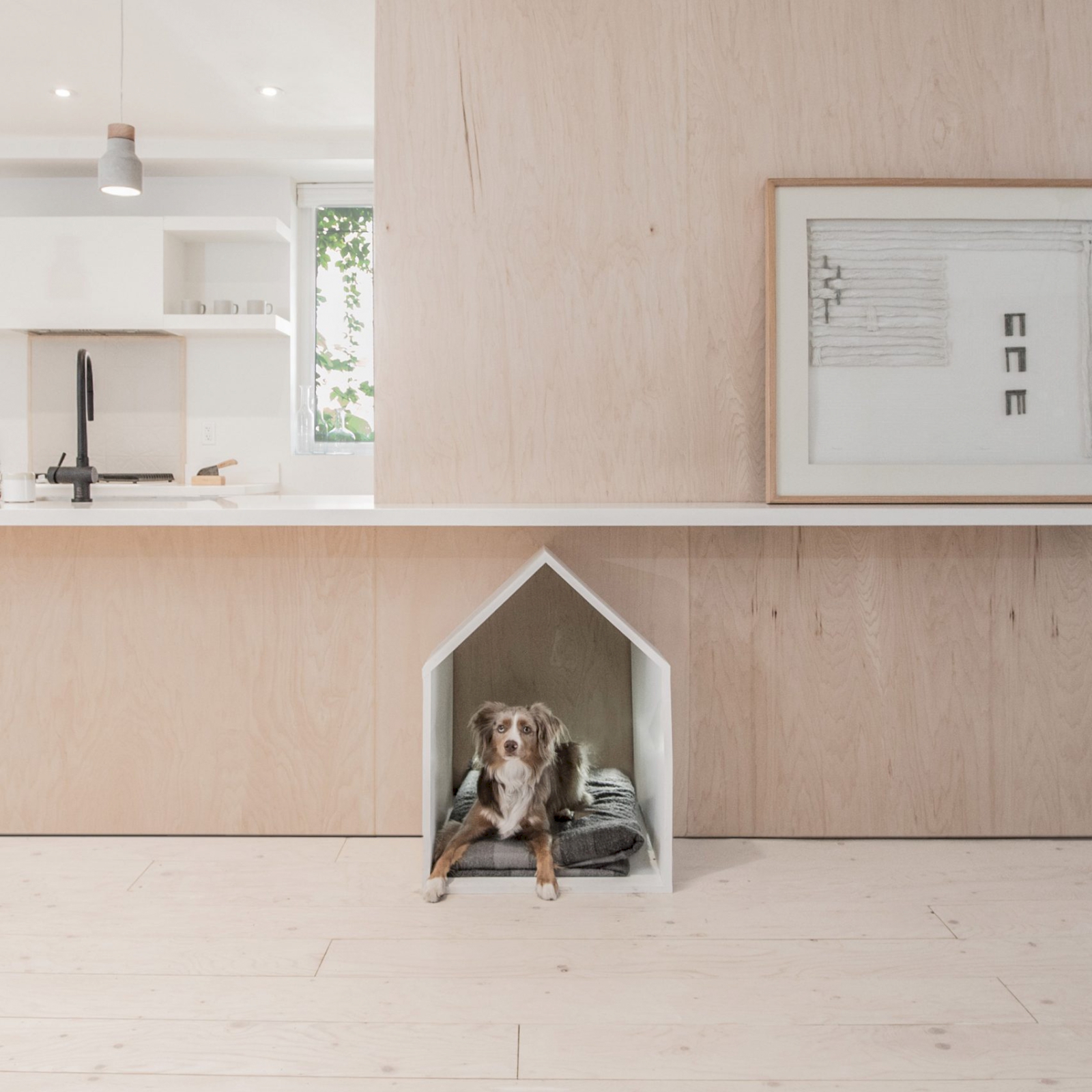 บริษัทสถาปนิกจากแคนาดา StudioAC ออกแบบพื้นที่สำหรับน้องหมาในรูปทรงบ้านเล็กๆ สำหรับเป็นที่นอนของครอบครัวหมาน้อย รัสตี้ ในยามที่รีโนเวตบ้านในโตรอนโตหลังนี้ อ่านเกี่ยวกับ Sheridan Residence ได้ที่นี่ https://goo.gl/iCPo79