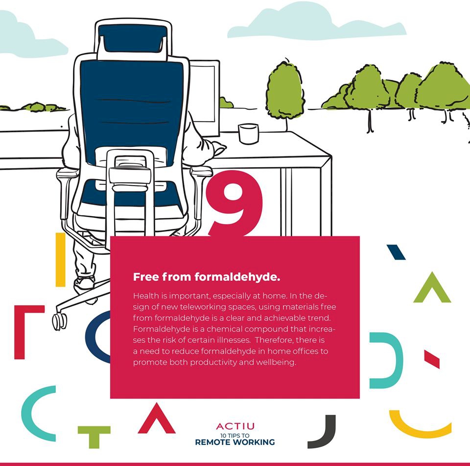 เพราะสุขภาพเป็นสิ่งสำคัญ โดยเฉพาะอย่างยิ่งในบ้าน การทำงานทางไกลควรเลือกใช้วัสดุและอุปกรณ์ที่ปลอดจากสารเคมีอันตรายอย่างสารฟอร์มาลดีไฮด์ที่ใช้ในการทำสี การเลือกใช้อุปกรณ์ทำงานที่ปลอดสารพิษทำให้ลดความเสีี่ยงต่อสุขภาพทั้งในระยะสั้นและระยะยาว