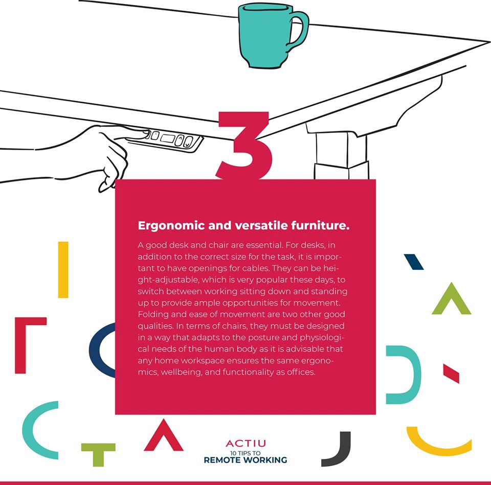 ณ จุดนี้ ACTIU แบรนด์เฟอร์นิเจอร์ชั้นนำของสเปน พันธมิตรของเรา ที่มีพื้นฐานในการผลิตเฟอร์นิเจอร์สำนักงานและโฮมออฟฟิศ ได้รวบรวมประสบการณ์อันยาวนานกลั่นกรองมาเป็นเคล็ดลับ 10 ข้อ ในการสร้างโฮมออฟฟิศที่สะดวกสบายและเปี่ยมประสิทธิภาพที่สุดสำหรับคุณ เรามาดูกันว่ามีเคล็ดลับอะไรบ้าง