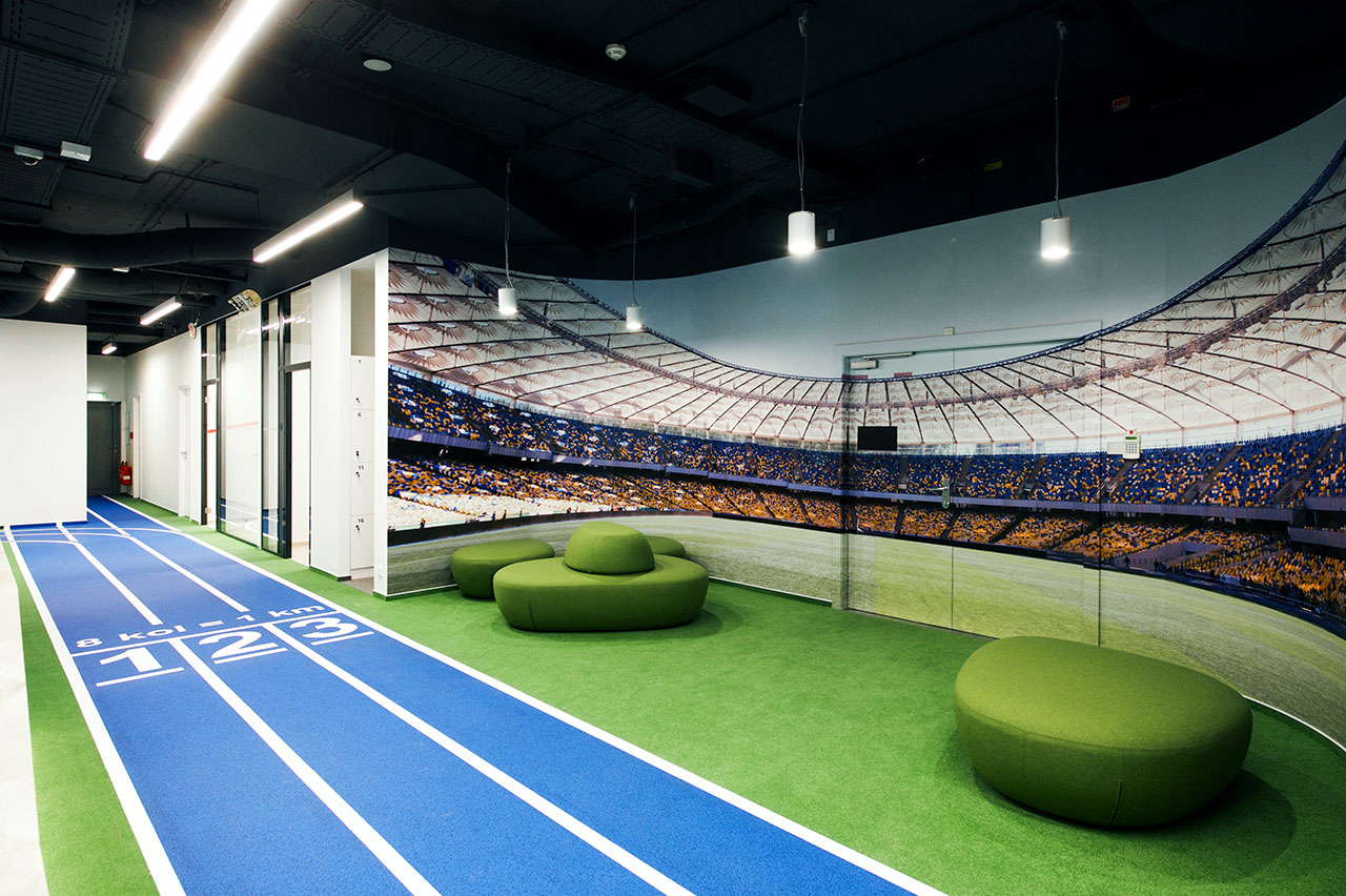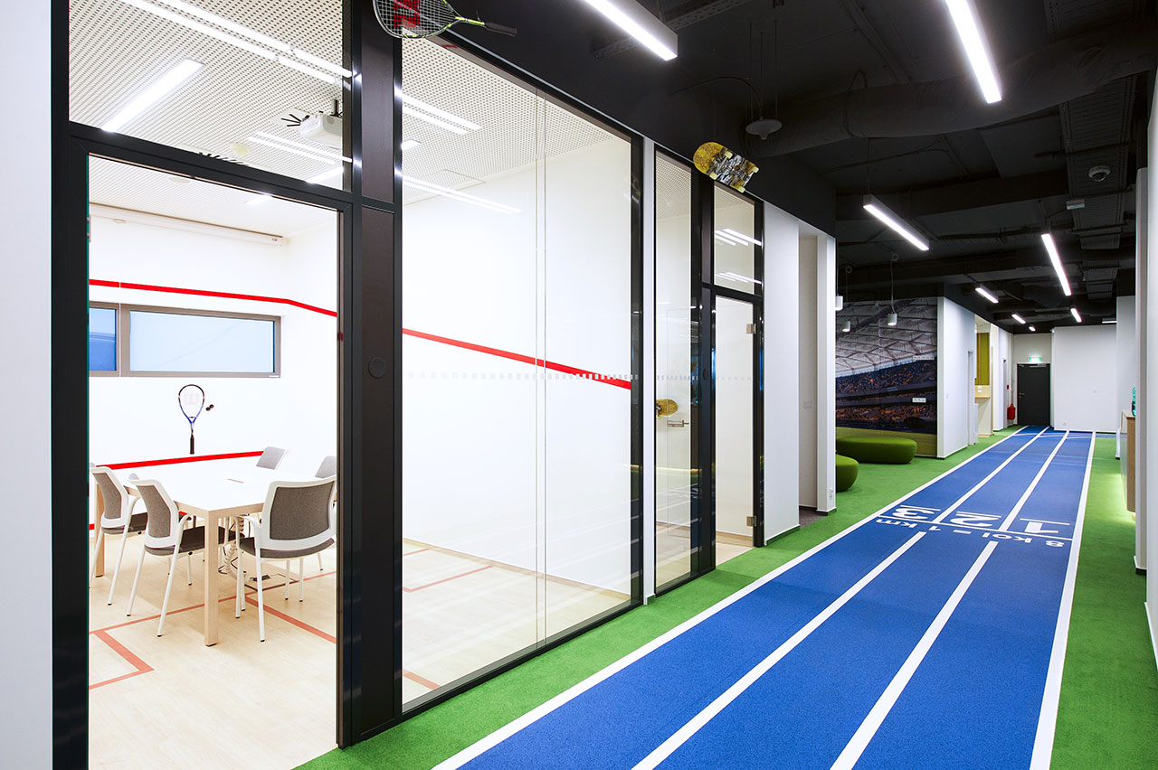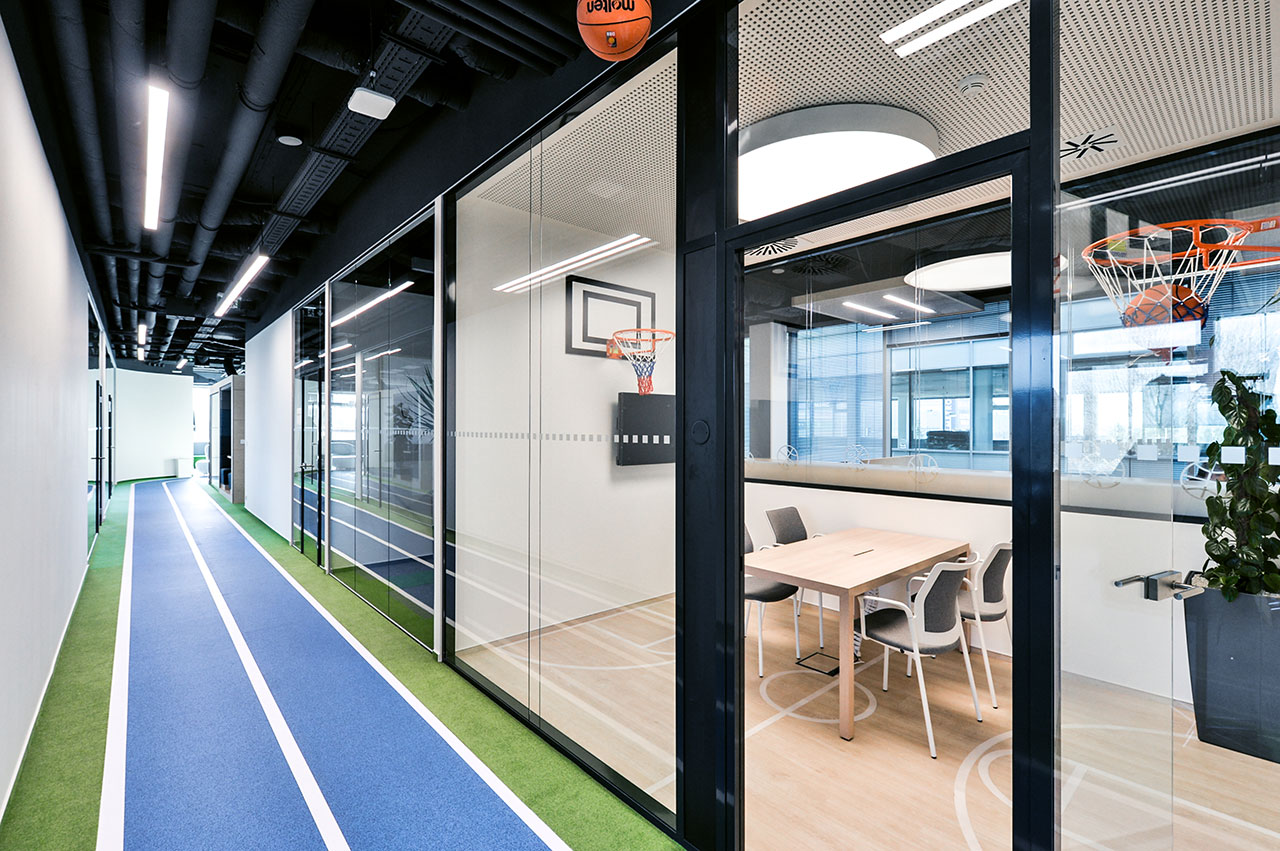 การตกแต่งระหว่างห้องประชุมและห้องทำงานต่างๆ ถูกออกแบบในธีมกีฬาอันหลากหลาย ที่มองเห็นได้ชัดเจน เพื่อกระตุ้นให้เกิดความคึกคักกระปรี้กระเปร่า และเปิดโอกาสให้สมาชิกของทีมเรียกประชุมหรือพบปะกันได้อย่างง่ายดาย ทั้งในแบบปากต่อปาก หรือด้วยระบบออนไลน์