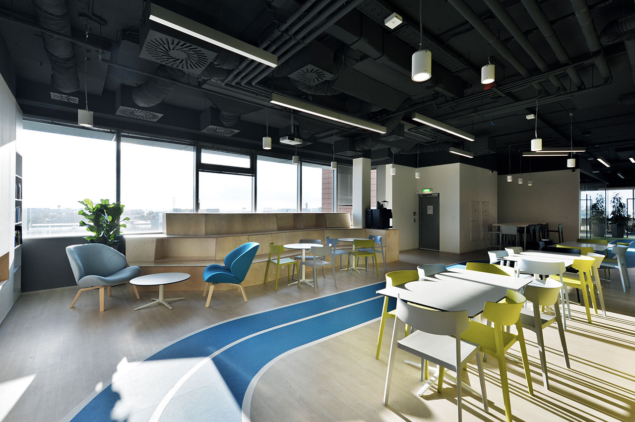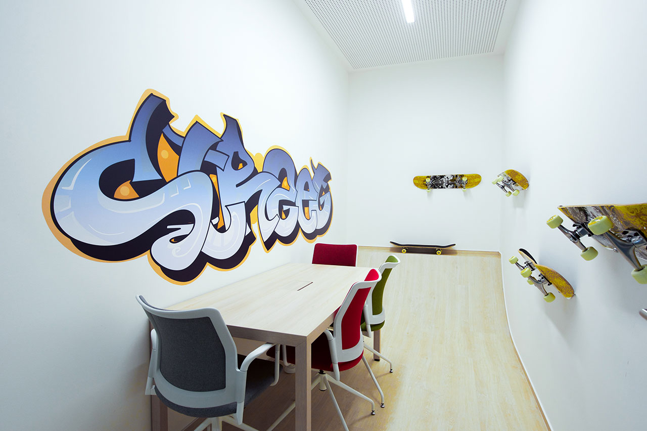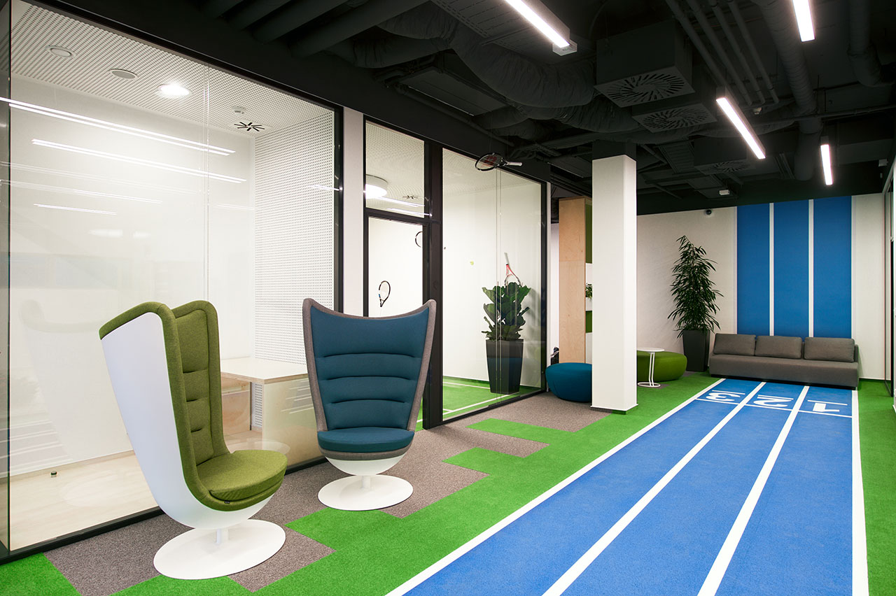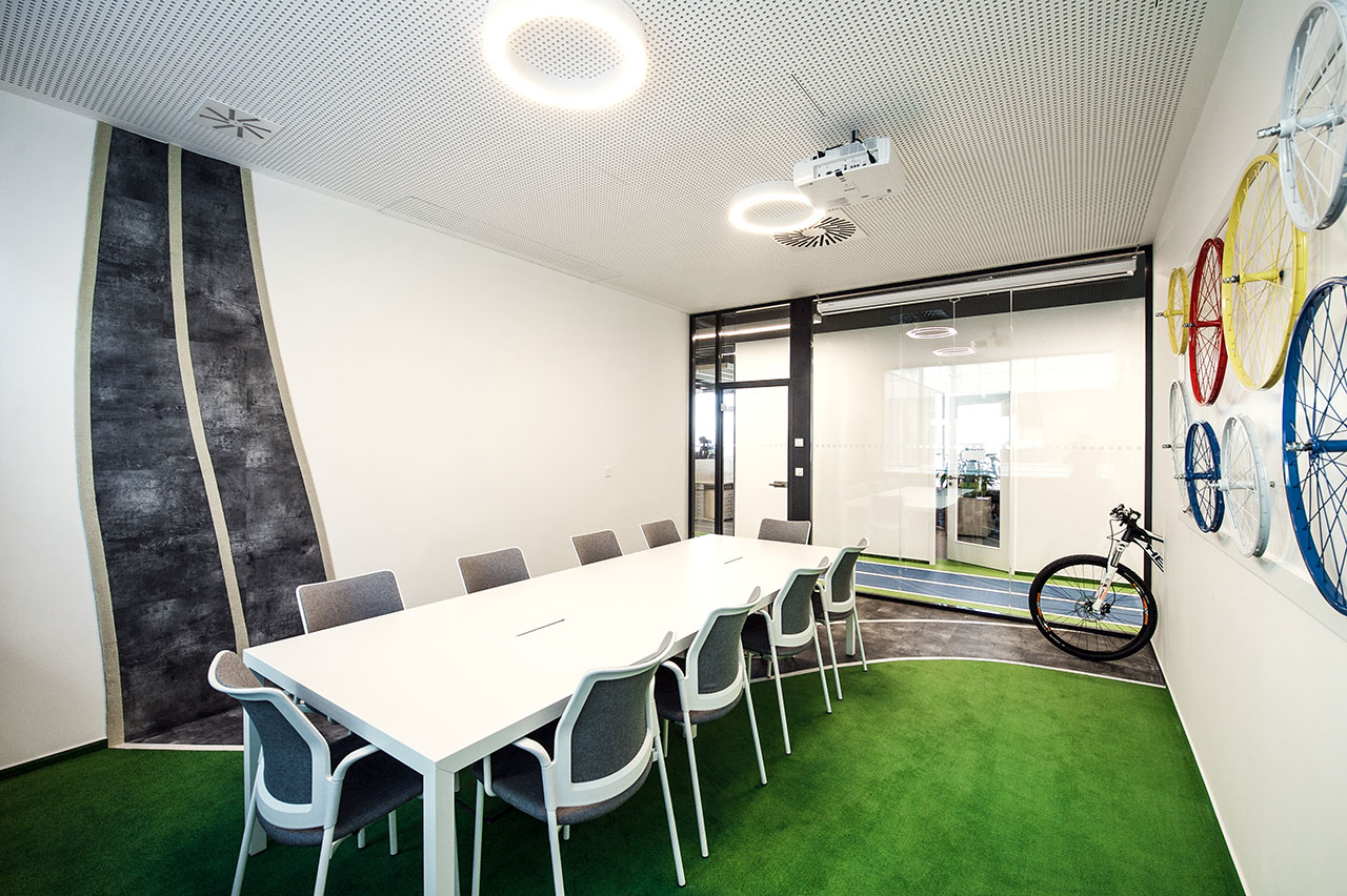 การตกแต่งระหว่างห้องประชุมและห้องทำงานต่างๆ ถูกออกแบบในธีมกีฬาอันหลากหลาย ที่มองเห็นได้ชัดเจน เพื่อกระตุ้นให้เกิดความคึกคักกระปรี้กระเปร่า และเปิดโอกาสให้สมาชิกของทีมเรียกประชุมหรือพบปะกันได้อย่างง่ายดาย ทั้งในแบบปากต่อปาก หรือด้วยระบบออนไลน์