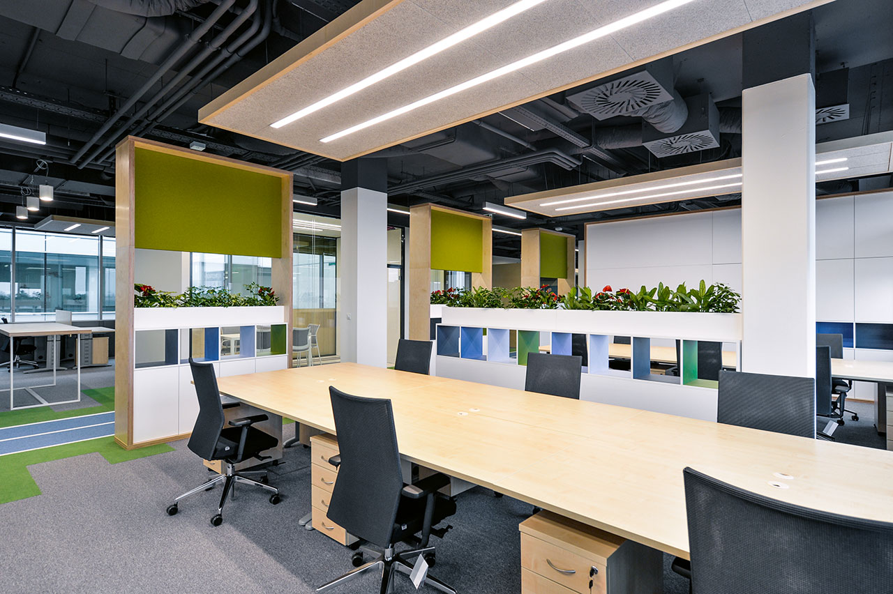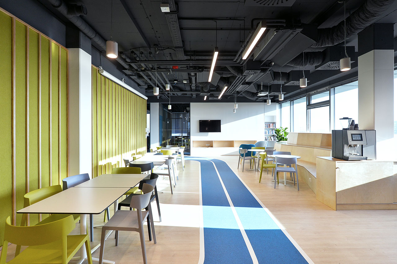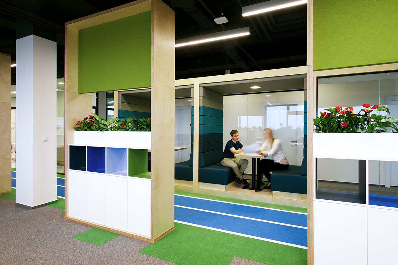 แผนผังของสำนักงานในรูปแบบนี้ นำเสนอความเปลี่ยนแปลงอันลึกซึ้งสำหรับ Sportisimo ซึ่งก่อนหน้านี้ พนักงานของบริษัท ต่างเคยทำงานอยู่ในสำนักงานแบบเดิมๆ ในคอกสี่เหลี่ยม ซึ่งในอดีตเป็นที่นิยมสำหรับสำนักงานขายในยุคเก่าก่อน แต่ไม่ใช่ในยุคปัจจุบันอีกต่อไป