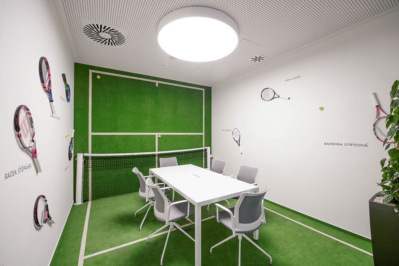 Sportisimo ซึ่งเป็นบริษัทผู้เชี่ยวชาญในตลาดสินค้ากีฬา ได้สร้างพลังความเคลื่อนไหวและสมรรถภาพแห่งการกีฬาเพื่อเกื้อหนุนกระดูกสันหลังและสุนทรียะของสำนักงานแห่งใหม่แห่งนี้ ด้วยภาพลักษณ์อันคล่องแคล่วแบบนักกีฬา ด้วยการวางโต๊ะประชาสัมพันธ์เอาไว้ในโกลตาข่ายฟุตบอลจริงๆ และเปลี่ยนห้องนั่งเล่นให้สะท้อนภาพลักษณ์ของกีฬาอันหลากหลาย ไม่ว่าจะเป็นเทนนิส, ขี่จักรยาน, สเก็ต และสควอช เป็นอาทิ