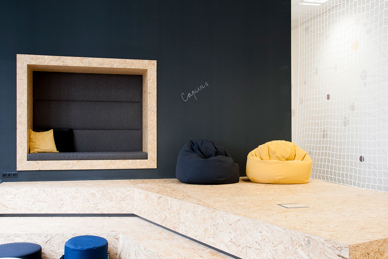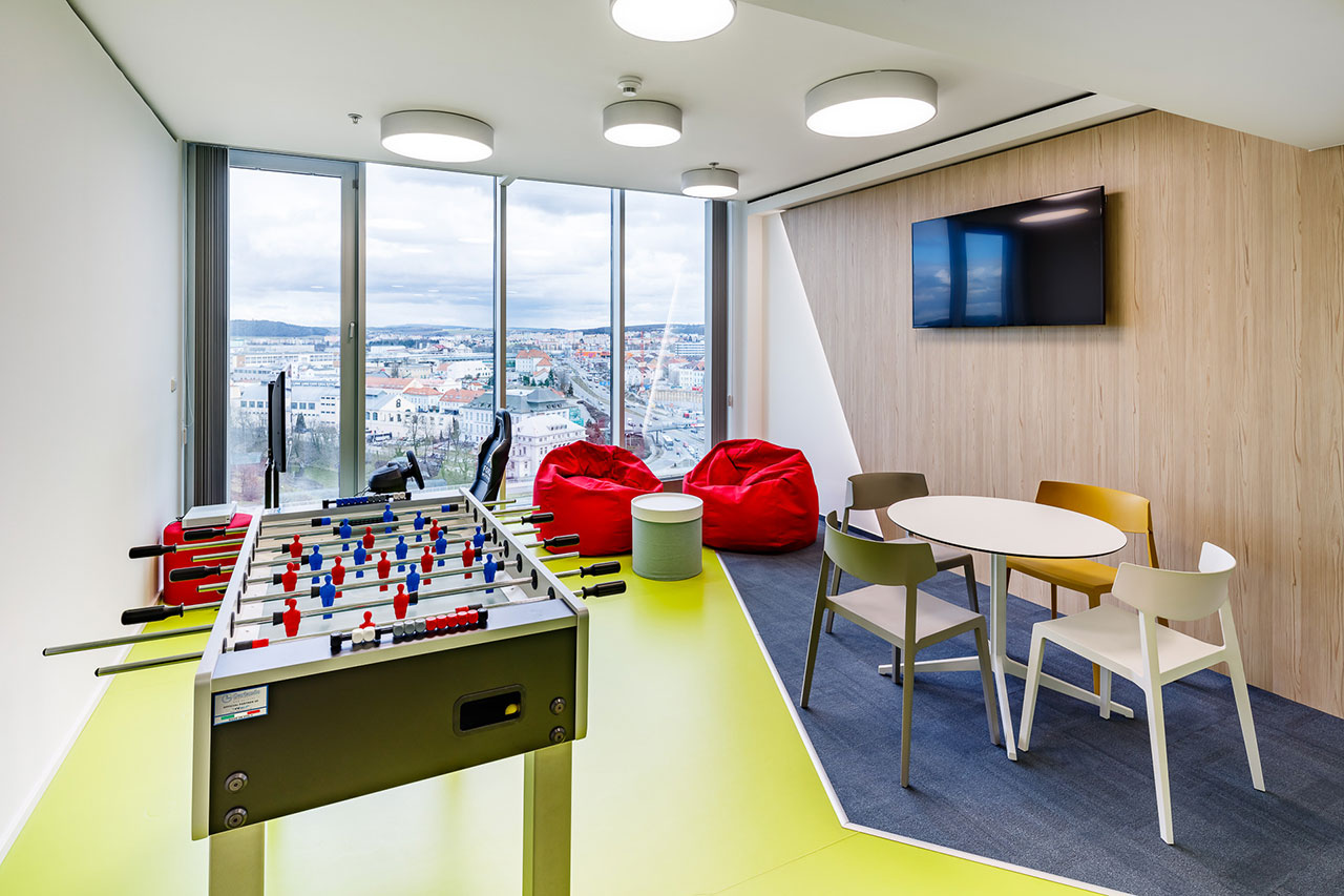 ด้วยผลิตภัณฑ์อย่าง CRON เก้าอี้อันเรียบง่ายแต่หรูหราเปี่ยมสไตล์ และ LONGO โต๊ะที่หลอมรวมตัวเข้ากับพื้นที่ใช้สอยอันหลากหลาย ในห้องทำงานและห้องประชุม ในส่วนของห้องสังสรรค์และรับประทานอาหาร ตกแต่งและใช้งานด้วย WING เก้าอี้สายพันธุ์ใหม่เปี่ยมสไตล์ ที่ใช้งานร่วมกับ TABULAR โต๊ะอเนกประสงค์ที่เปี่ยมประโยชน์ใช้สอย และเสริมสร้างบรรยากาศสนุกสนานด้วยเครื่องเล่นหรือเกมต่างๆ ให้ทีมงานได้เล่นสนุกเพื่อผ่อนคลายอิริยาบถจากการทำงานและสร้างความสนุกสนานได้เป็นอย่างดี