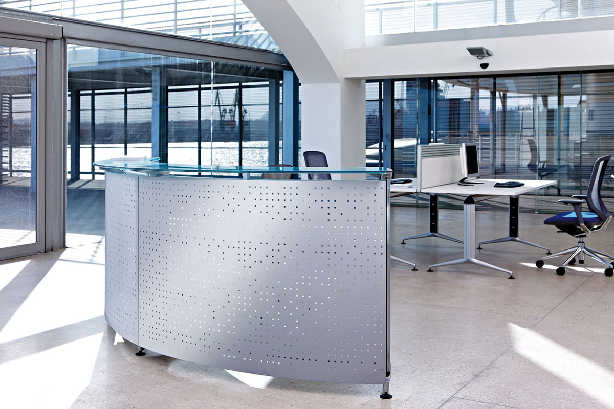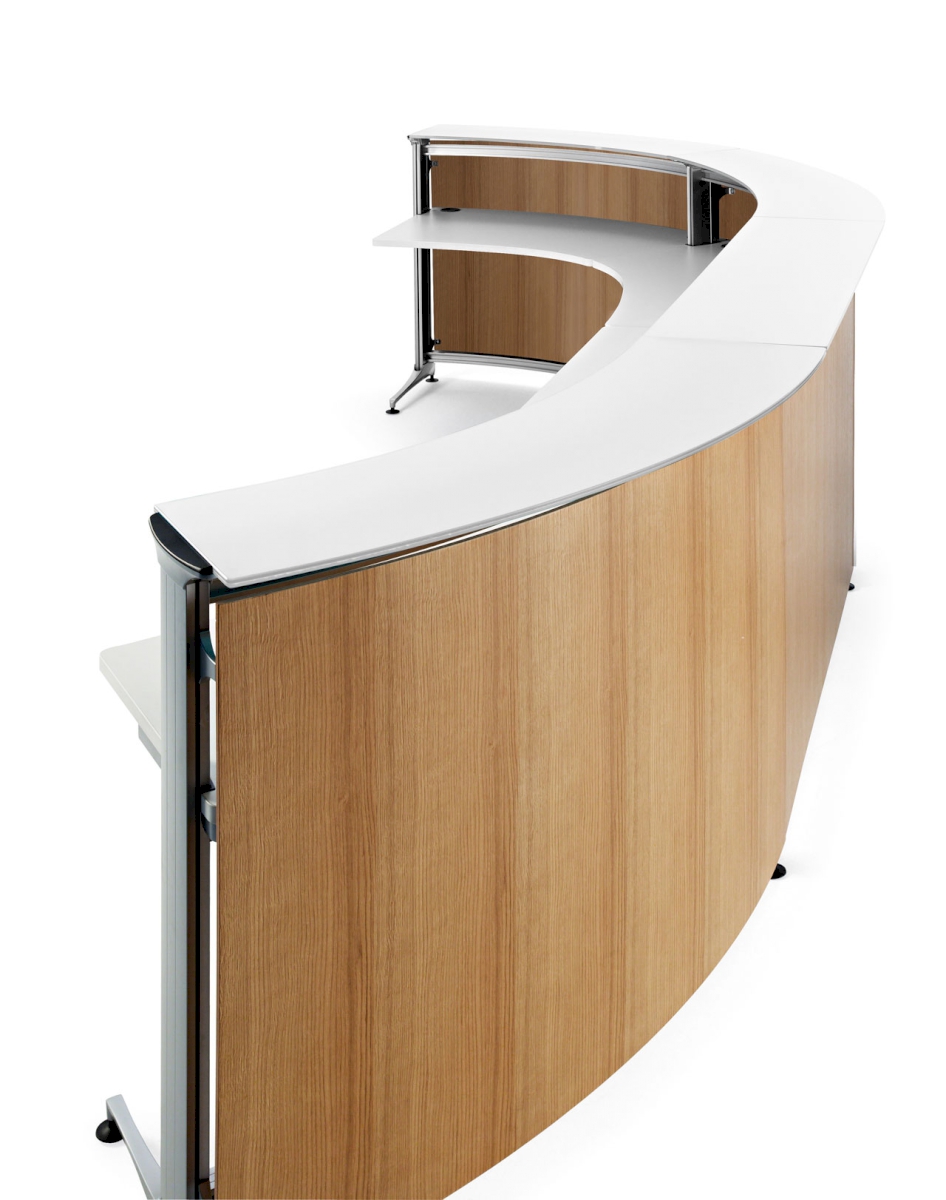 วัสดุและพื้นผิวที่ใช้ทำส่วนเคานท์เตอร์มีให้เลือกหลากหลาย ไม่ว่าจะเป็น ไม้อัด โลหะ กระจก อลูมิเนียม และอะครีลิค รวมถึงมีองค์ประกอบเสริมต่างๆ ที่เปิดโอกาสให้ผู้ใช้งานสามารถตกแต่งพื้นที่ต้อนรับและประชาสัมพันธ์ได้อย่างใจต้องการ เพื่อให้เข้ากับสภาพแวดล้อมและการตกแต่งของสำนักงานที่แตกต่างหลากหลาย